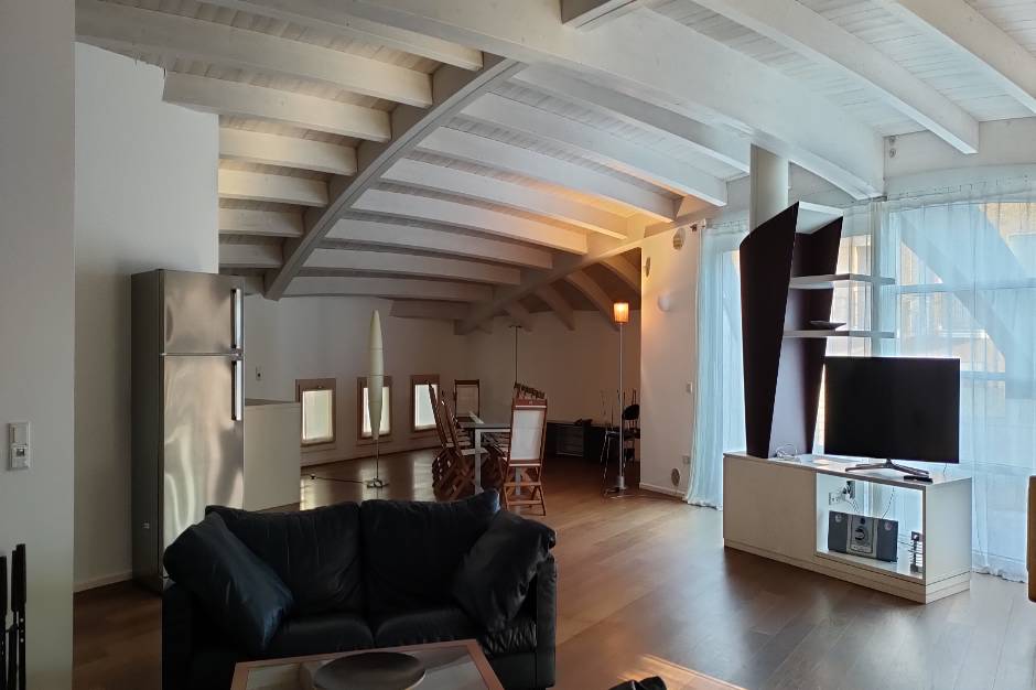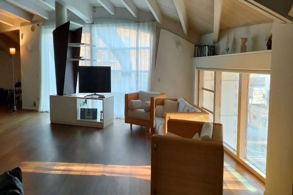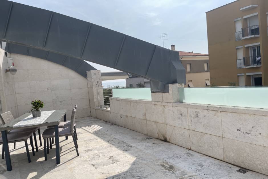 Pesaro città: zona mare, a 50 mt. circa dalla spiaggia e 500 mt. dal centro di Pesaro, in ottima villa bifamiliare con ascensore affittiamo al secondo piano elegante mansarda abitabile di mq. 160 circa completamente arredata con mobilio nuovo. La residenza è composta da: grande zona giorno open space adibita a sala da pranzo e cucina a vista dotata di lavastoviglie e lavatrice con camino, e grande terrazzo abitabile vista mare. La zona notte è composta da due camere doppie ed un bagno con box doccia. No posto auto. Riscaldamento e raffrescamento a pavimento. Classe energetica G Ipe 264,60. Per motivi di riservatezza, le informazioni relative all'indirizzo dell’immobile qui contenute, potrebbero essere approssimative. Chiamaci subito per una visita!! al seguente recapito telefonico: 072131136. CIN: IT041044C2CHQNRT74